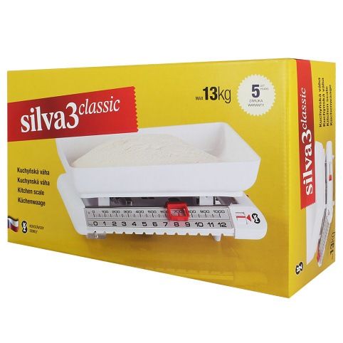 Váha Silva 3 Classic je koncipována jako klasická stolní, běhounová váha se spolehlivým mechanickým vážícím systémem a dobrým designem. Kuchyňská váha do 13 kg. Součástí balení je nízká miska.