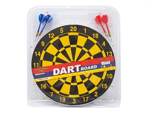 Šipky set 4 šipky. Průměr terče 30 cm. Obsah balení - terč, 2x modrá šipka, 2x červená šipka.