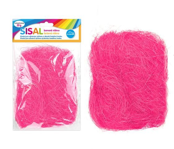 Barvené sisalové vlákno vhodné k dekoračním účelům nebo jako výplňový materiál do aranžmá. Barva: růžová
