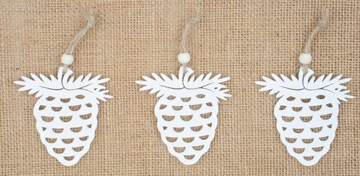 Šiška dřevěná bílá 6 cm 3ks, na zavěšení