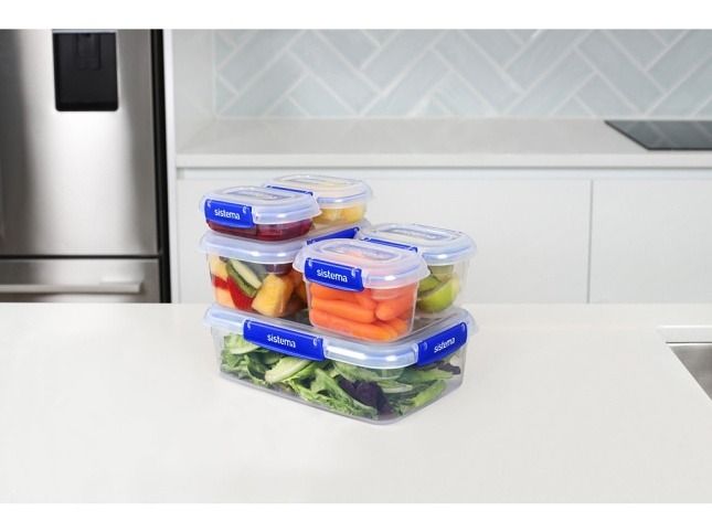 Perfektní volbou pro všechny, kteří si chtějí uspořádat svoji kuchyň.Modulární design umožňuje efektivní stohování a šetří tak cenný prostor. Díky vestavěnému těsnění proti úniku udrží potraviny déle čerstvé a zabrání vylití tekutin. Krabičky lze použít i na přenášení svačin a obědů. Výhody: Vodotěsné Klipy Sistema® se snadným zajištěním Víceúčelová