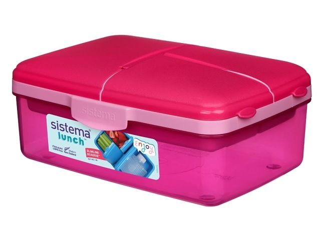 Sistema® Lunch™ Krabička Quaddie 1,5 l se 3 výklopnými přihrádkami ve víku a s lahví na pi