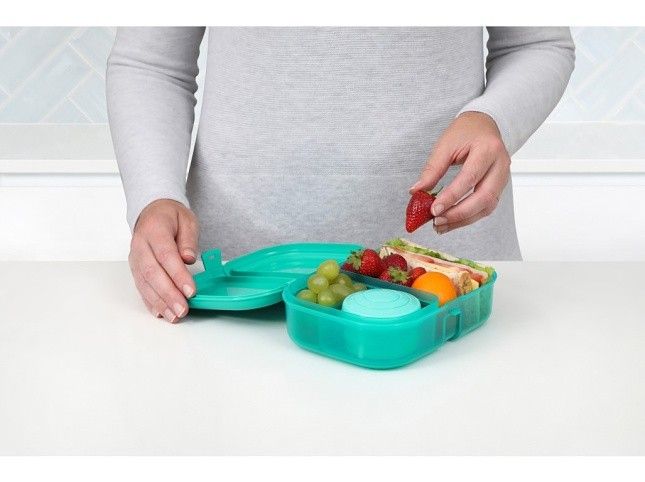 Díky inovativnímu designu s třemi komorami a pohyblivou dělenou přihrádkou, tato krabička umožňuje udržet jídlo oddělené a čerstvé až do doby konzumace. Součástí je také 130ml Mini Bite™ s těsnícím šroubovacím víčkem, ideální pro jogurt, dresinky nebo omáčky. Výhody: Ideální pro děti 130ml Mini Bite™ nádobka na jogurt, dresinky nebo omáčky Pohyblivá dělená přihrádka Tři komory