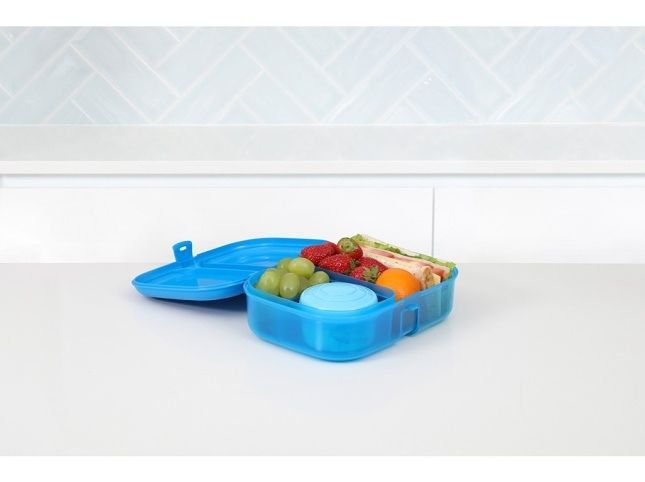 Díky inovativnímu designu s třemi komorami a pohyblivou dělenou přihrádkou, tato krabička umožňuje udržet jídlo oddělené a čerstvé až do doby konzumace. Součástí je také 130ml Mini Bite™ s těsnícím šroubovacím víčkem, ideální pro jogurt, dresinky nebo omáčky. Výhody: Ideální pro děti 130ml Mini Bite™ nádobka na jogurt, dresinky nebo omáčky Pohyblivá dělená přihrádka Tři komory