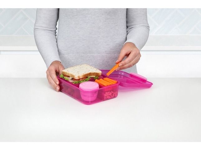 Díky inovativnímu designu s třemi komorami, odnímatelnými tácky a 150ml kelímkem na jogurt, tato krabička umožňuje udržet jídlo oddělené a čerstvé až do doby konzumace. Výhody: Ideální pro děti Tři komory 150ml kelímek na jogurt Odklápěcí víko