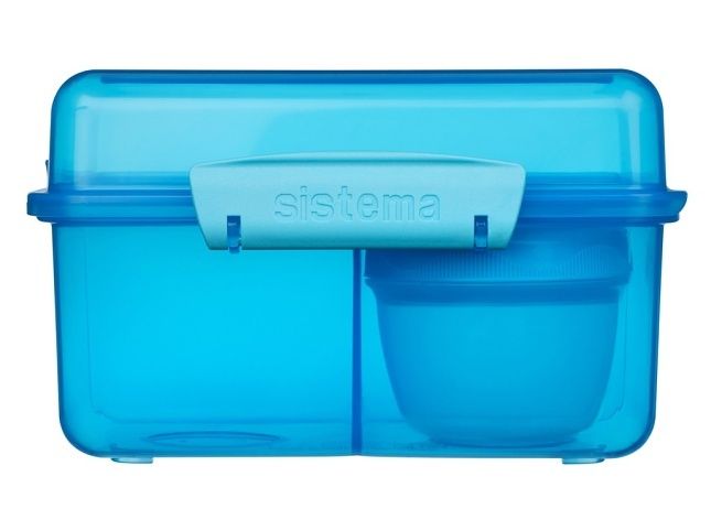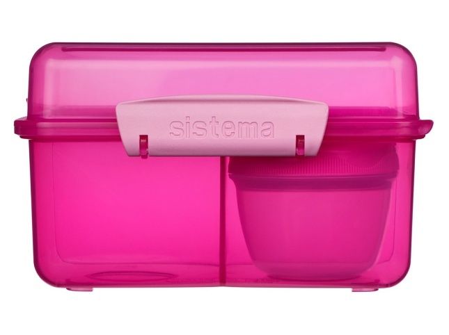 Díky inovativnímu designu s třemi komorami, odnímatelnými tácky a 150ml kelímkem na jogurt, tato krabička umožňuje udržet jídlo oddělené a čerstvé až do doby konzumace. Výhody: Ideální pro děti Tři komory 150ml kelímek na jogurt Odklápěcí víko