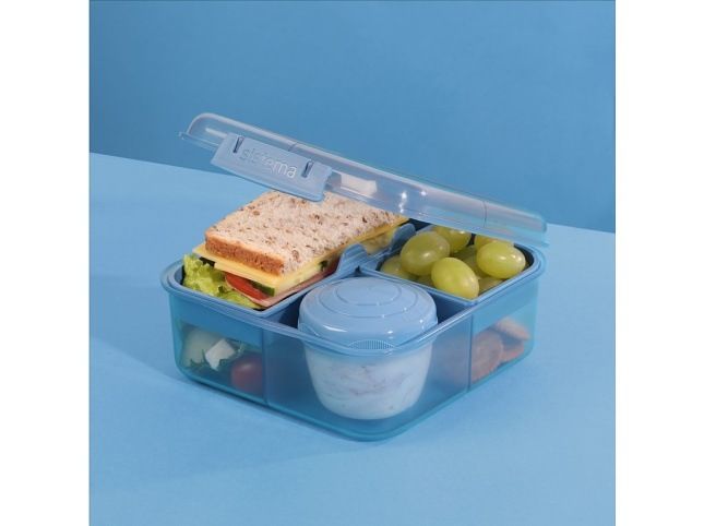 Sistema® Ocean Bound Bento Cube tříkomorová krabička s nádobou na jogurt a 2 tácky 1,25 l,