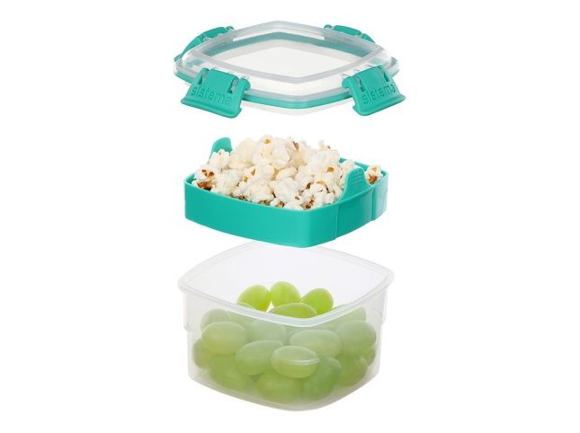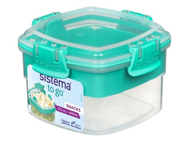Sistema® 400 ml Snacks TO GO™ je skvělou volbou pro všechny, kteří hledají praktický a stylový způsob, jak si vzít svačinu na cesty. Odnímatelný zásobník umožňuje oddělennírůzných druhů potravin, takže si můžete vychutnat čerstvou a chutnou svačinu kdykoli a kdekoli. Stohovatelný tvar zajišťuje maximální využití prostoru ve spíži, chladničce a mrazničce. Snadno uzavíratelné klipy Sistema® a pružné těsnění udržují potraviny déle čerstvé. Výhody: Vhodné pro děti Praktická a kompaktní Udržuje svačiny čerstvé Snadno se čistí Snadné uzamykání: Klip Sistema® a pružné těsnění