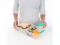 Krabička je rozdělena do tří komor, které vám umožní oddělit různé druhy potravin a zabránit jejich smíchání. Můžete si tak vzít s sebou například sendvič, salát a ovoce v jednom. Součástí krabičky je 150ml nádoba na jogurt s těsnícím šroubovacím víčkem, která je ideální pro uložení jogurtu, müsli, pudinku nebo jiných tekutých potravin. Výhody: Tři přihrádky Nádoba na jogurt Dvojitá víčka