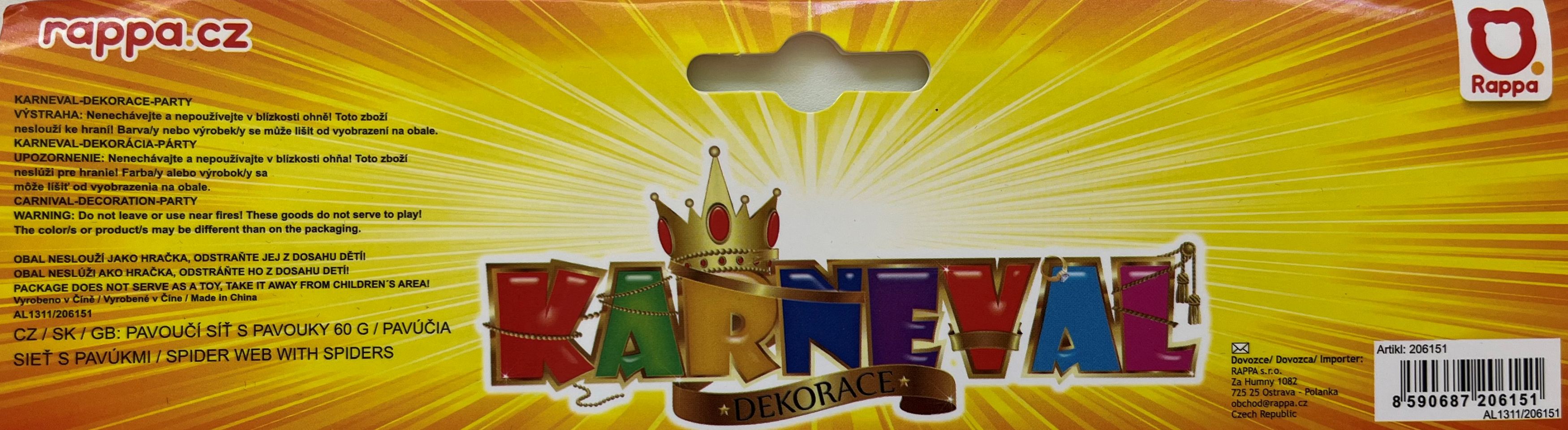 Senzační pavoučí síť pro doladění atmosféry na jakoukoli Halloween party uvnitř nebo venku! Tato bílá síť má 60 gramů a součástí jsou 4 černí plastoví pavoučci ve velikosti 3 cm.