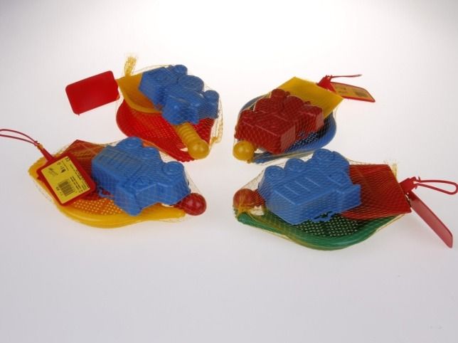 Plastová lopatka, sítko a bábovka na písek. Věk 1+.