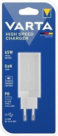 Síťová nabíječka "High Speed", 1x USB, 2x USB-C, 65W, VARTA 57956101401