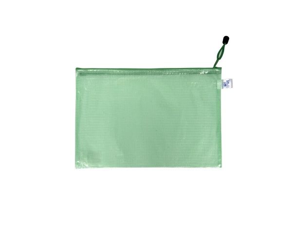 Síťovaná obálka A5 s praktickým uzavíráním na zip, vyhotovena z polypropylenu tloušťky 300µ. Široká možnost využití - určeno např. na přenášení a uchovávání dokumentů, fotografií, CD, disket. Barva zelená - zip v barvě obálky.