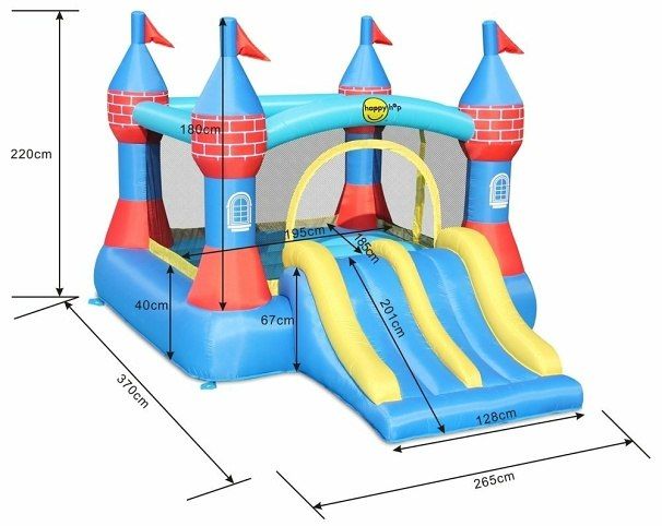 Skákací hrad s dvojitou skluzavkou je ideální venkovní zábavou pro Vaše děti. Hrad obsahuje dvě půlkruhové prolézačky, překážku, házecí koš, malou horolezeckou stěnu a dvojskluzavku. Celková nosnost 180 kg. Rozměr 4,6 × 2,5 × 2,5 m. Vhodné pro max 4 děti od 3–10 let.