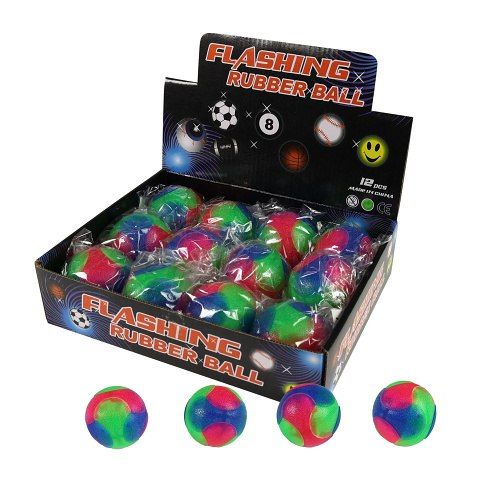 Barevný míček se světelným efektem! Po hození míčku o tvrdou plochu začne barevně blikat. Použití blikacího míčku může být také účinným způsobem, jak stimulovat vizuální vnímání a koordinaci, zejména u dětí. Prodává se pouze po celém balení 12 ks.