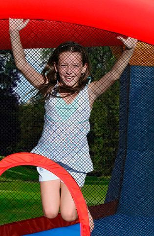 Kdo by netoužil mít na zahradě vlastní skákací hrad! Skákací hrad XXL nabízí obrovskou skokanskou plochu 20 m2 a senzační skluzavku. Bezpečí dětí během skákání zajišťují pevné nylonové sítě po celém obvodu hradu, s výjimkou přední strany vstupu na skluzavku. Hrad je vyroben z odolného laminovaného PVC a navíc disponuje odnímatelnou sluneční clonou. Pro rovnoměrné rozvádění vzduchu a menší námahu materiálu slouží vnitřně šité vzduchové komory. Ventilátor musí hrad dofukovat po celou dobu skákání, neboť dochází k malému úniku vzduchu dilatačními spárami a skrz otvory stehů. Klíčové vlastnosti skákacího hradu XXL - Barevný nafukovací hrad nadchne všechny děti - Skákací hrad je vyroben z kvalitního laminovaného PVC a nylonové tkaniny - Široká skluzavka hradu XXL nabízí ještě více zábavy - Odnímatelná sluneční clona - Díky pevným bezpečnostním sítím nehrozí vypadnutí dítěte z hradu - Vnitřně šité vzduchové komory rovnoměrně rozvádějí vzduch při skákání - Nosnost skákacího hradu XXL je 225 kg - Minimální věk pro skákání v hradu jsou 3 roky Hrad je zábavný i bezpečný Výrobce si dal záležet na bezpečnosti skákacího hradu nejen již zmíněnými nylonovými sítěmi, ale i kotvením hradu pomocí přiložených kolíků. Krytí ventilátoru zas poskytuje ochranu před poškozením při vniknutí cizích předmětů, prachu či vody. Ventilátor hradu XXL je chráněn proti vniknutí těles o průměru 12,5 mm, proti stříkající vodě a před dotykem prstem (IP24B). Hrad byl prověřen testem TÜV. Obsah balení: - Skákací hrad - Ventilátor - Přenosný vak - Kolíky ke kotvení - Opravná sada - Odnímatelná střecha - Návod k použití v českém jazyce PARAMETRY: -Šířka 400cm -Délka 500cm -Výška 300cm -Maximální váha jednotlivce 45 kg -Maximální celkové zatížení 225 kg -Maximální . počet dětí 5 -Věk 3 - 10 let - Podlahová plocha: 20 m2 POZOR!!! NEVHODNÉ PRO DOSPĚLÉ OSOBY. DOSPĚLÍ NESMÍ TENTO VÝROBEK POUŽÍVAT. NEVHODNÉ K PRONÁJMU NEBO KOMERČNÍMU POUŽÍVÁNÍ. NEZBYTNÉ SESTAVENÍ DOSPĚLOU OSOBOU. NEZBYTNÝ DOZOR DOSPĚLÉ OSOBY. Upozornění! Pouze pro domácí použití. Určeno pro venkovní použití. POUŽÍVAT POUZE NA MĚKKÉM PODKLADU.