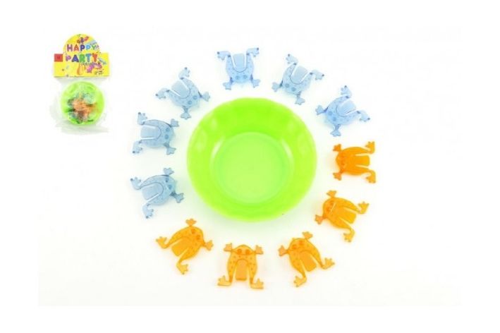 Hra vhodná na procvičení jemné motoriky. Děti vystřelují plastové žabky tak, aby skočily do misky.