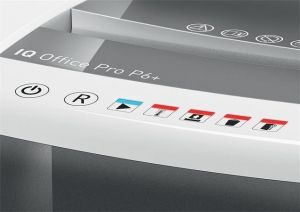 Nová skartovačka Leitz IQ Office Pro nabízí moderní stylový vzhled, vysokou výkonnost a bezpečnost. Stupeň utajení DIN P6+ znamená extra bezpečný řez (2x více než standardní super mikro řez). Perfektní bezproblémové skartování, ideální pro použití ve velkých kanceláří. Excelentní výkon s technologií proti zaseknutí papíru, tichý chod a dlouhý čas, po který je skartovačka schopná skartovat. Skartuje 5 listů A4 do velkého koše o objemu 30L. Jednoduché ovládání pomocí dotykových ovládacích prvků. Dlouhý skartovací cyklus pro až 4 hodiny pro nepřerušované skartování.