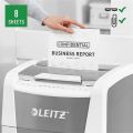 Funkce: technologie proti zaseknutí papíru (automaticky se zastaví a spustí zpětný chod); velkokapacitní odpadní nádoba; skartuje papír, svorky, sponky na papír; dotykové ovládání; mimořádně+ tichý provoz (při dodržování údržby pomocí olejových listů LEITZ).