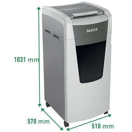 Funkce: technologie proti zaseknutí papíru (automaticky se zastaví a spustí zpětný chod); velkokapacitní odpadní nádoba; skartuje papír, svorky, sponky na papír; dotykové ovládání; mimořádně+ tichý provoz (při dodržování údržby pomocí olejových listů LEITZ).