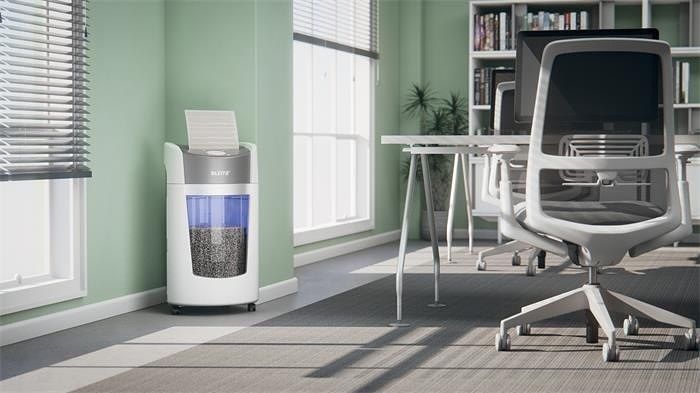 Skartovač Leitz IQ OptiMax s unikátní technologií otáčení nádob. Skartovací stroj, který naráz pojme až 10 listů (80g/m2).