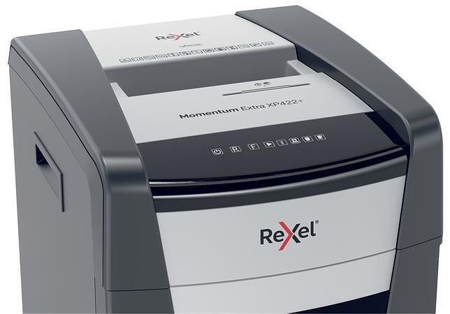 Bez zasekávací skartovačka Rexel "Momentum Extra XP422 +" skartuje také bankovní karty, kancelářské sponky a drátky do sešívaček a CD/DVD.