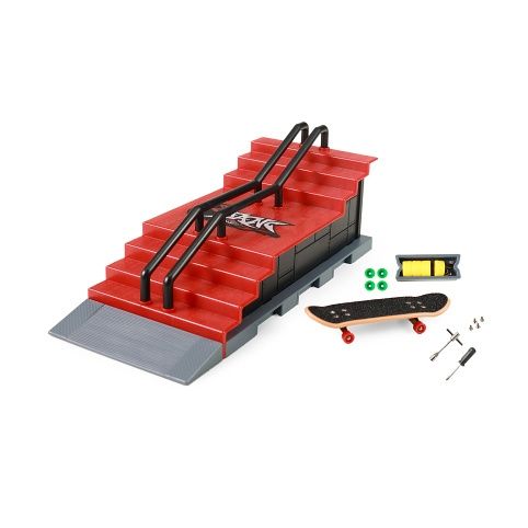 Vlastní skatepark se schodištěm a zábradlím, tak to je paráda! Učte se nové triky s figerboardem. Součástí balení je 1 skateboard/fingerboard šroubovací s příslušenstvím. Design se může lišit od vyobrazení.