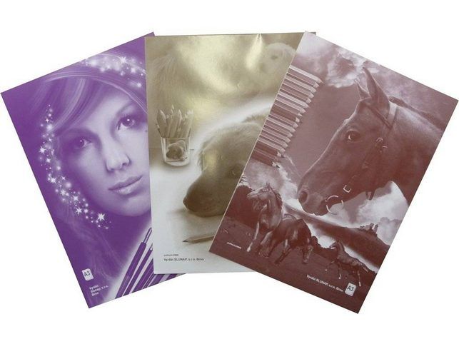 Klasický školní skicák s bílými kreslicími kartony, které jsou vhodné pro malování, vodovkami, temperami apod.