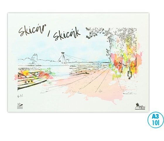 Skicák z výkresového kartónu, lepený, podlepený šedou lepenkou. Formát: A3 Počet listů: 10 Gramáž: 200g