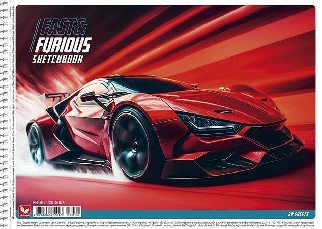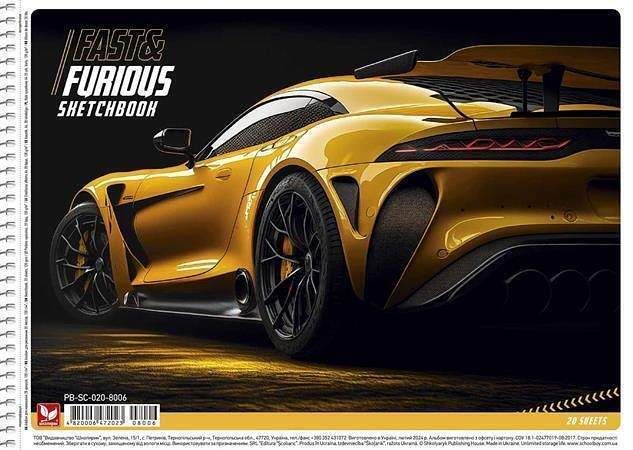 Skicák, náčrtník "Fast&Furious", A4, 20 listů, 120 g, SHKOLYARYK PB-SC-020-8006