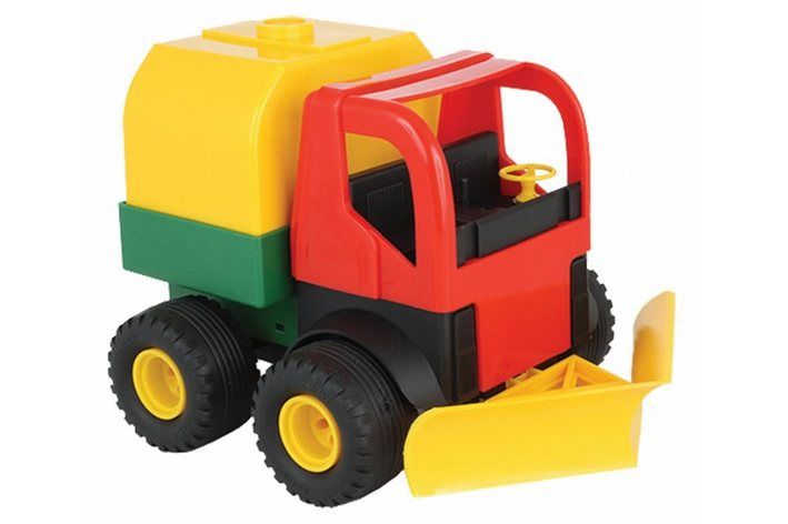 Obsah balení: kabina, 1x cisterna (žlutý a zelený díl), podvozek, radlice, 2x šedý ochranný rám.