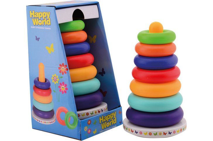 Skladací mega věž. Rozvíjí motoriku, určování velikostí i barev. Věž obsahuje základnu + 7 kroužků různých barev a velikostí.