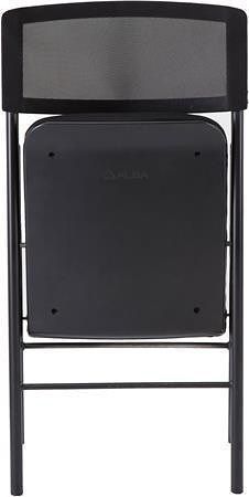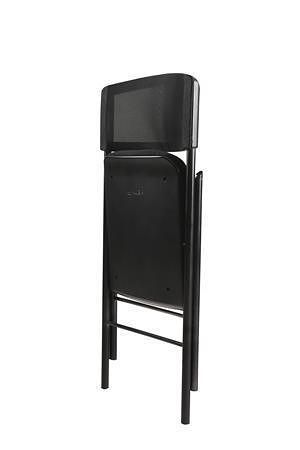 Skládací židle s vyztuženým pěnovým sedákem a síťovou zádovou opěrkou s ergonomickým tvarováním zajišťuje pohodlí a dostatečný komfort.