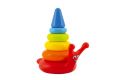 Tato pestrobarevná skládací plastová pyramida v barvách duhy je perfektní hračkou pro ty nejmenší děti. Různobarevné kroužky se na sebe skládají podle velikosti. Motiv šneka. Rozvíjí vizuální stimulaci, motorické dovednosti a koordinaci rukou.