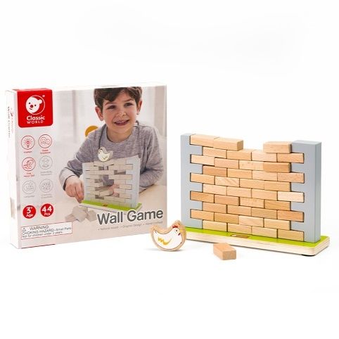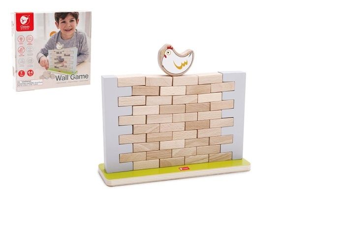 Skvělá dřevěná hra pro celou rodinu, jejíž hlavní předností jsou jednoduchá pravidla, logické myšlení a zábava pro všechny věkové kategorie. Postavte zeď ze speciálně připravených bloků. Umístěte slepici na vrchol a pak cihly jednu po druhé vytáhněte ze zdi. Když se zeď zhroutí, hra končí. Při hře se vaše batole naučí soustředění, strategii a řešení problémů a zlepší si koordinaci rukou a očí.