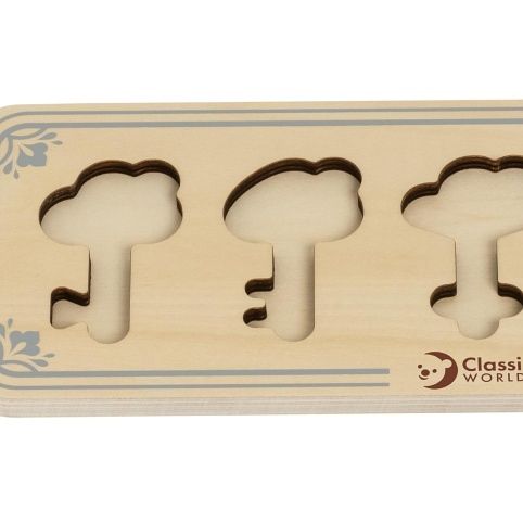 Dřevěné puzzle pro děti skládající se z dřevěného rámečku s výřezy ve tvaru klíčů, dřevěných klíčů a dřevěných zámků je vkládacím puzzle, které potrénuje motorické dovednosti, koordinaci očí a rukou, zrakové vnímání a potrápí dětskou mysl. Součastí balení je 11 kusů.¨