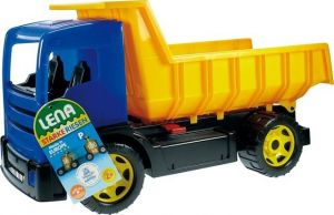 Plastové auto s rozšířenou korbou na vožení velkého a těžkého nákladu. Korbu je možno zajistit pojistkou proti nežádoucímu vyklopení. Velikost 62x26x35cm. Vyrobeno v ČR.