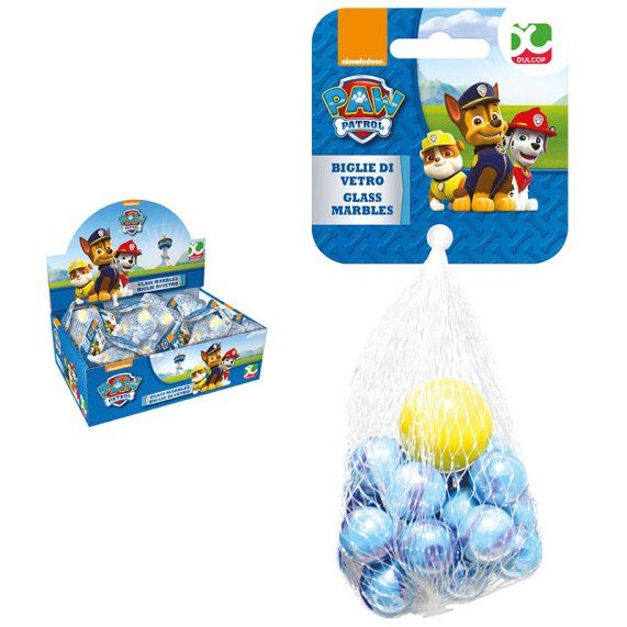 Skleněné kuličky Tlapková patrola. 21 ks kuliček v síťce.Velikost