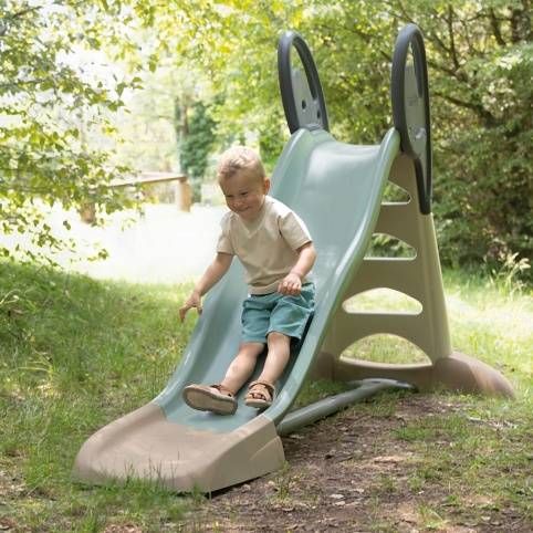 Skluzavka z kvalitního, robustního plastu. Je vyráběna specifickou technologií vyfukovaného plastu, která eliminuje její poškození a zároveň je pro provoz skluzavky velmi bezpečná.Dvojitá zvlněná skluzavka s extra velkou délkou skluzavky: 2,30 m. Stabilit