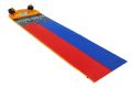 Na boční straně skluzavky stříká voda z trysek a jízdu bezpečně ukončí bazének s vodou, která při dojezdu vytvoří gejzír.