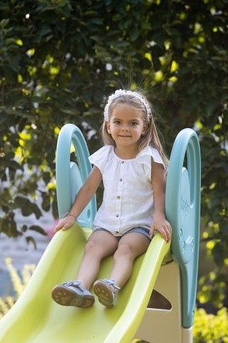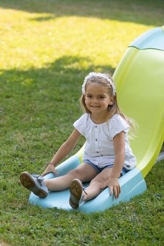 Skluzavka z kvalitního, robustního plastu. Je vyráběna specifickou technologií vyfukovaného plastu, která eliminuje její poškození a zároveň je pro provoz skluzavky velmi bezpečná.Dvojitá zvlněná skluzavka s extra velkou délkou skluzavky: 2,30 m. Stabilit