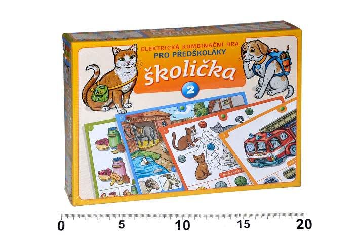 Elektrická výuková hra Školička 3 učí děti všímat si vztahů a logických souvislostí mezi obrázky, porovnávat je a správně je k sobě přiřazovat.