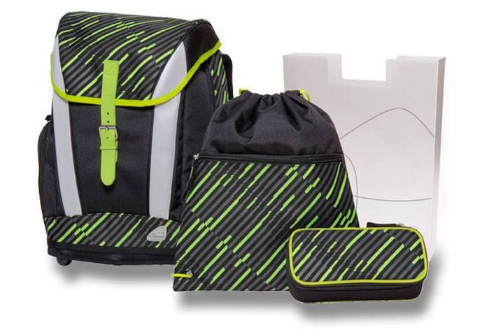 Školní taška (aktovka) Schneiders splňuje nejpřísnější požadavky na bezpečnost, funkčnost a pohodlí. 4kusový set obsahuje školní aktovku s nadčasovým motivem, penál, sáček na cvičky a desky na sešity.
