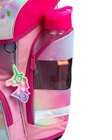 Kvalitní, ergonomická a velmi odolná školní aktovka je vybavena reflexními prvky a anatomicky tvarovanými zády s pevnou konstrukcí. 3D anatomický zádový panel Systém Air Flow a prodyšné polstrování Vnitřní prostorné uspořádání Osmar - zapínání magnetem Vodoodpudivý materiál Odolné dno s plastovými nožičkami Reflexní prvky Kapsa na lunch box Pop it přívěsek Rozměry: výška 38 cm, šířka 31 cm, hloubka 23 cm Hmotnost: 1 kg Nosnost: 7 kg Objem: 17 l