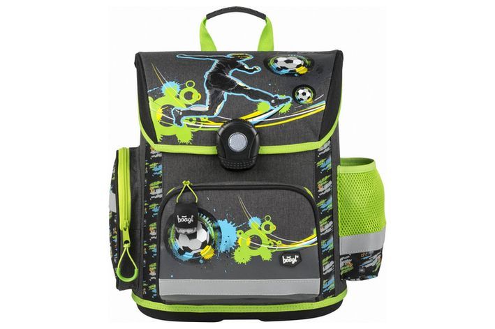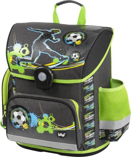 Školní aktovka s motivem fotbalu na přední části, vhodná pro žáky 1. - 2. třídy ZŠ.