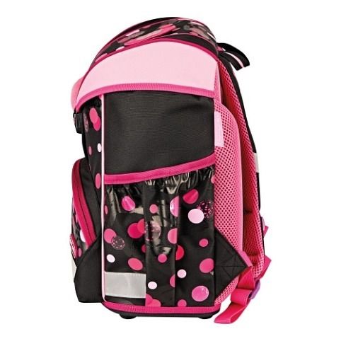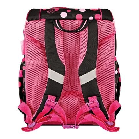 36x28x21 cm, anatomicky tvarovaná polstrovaná záda, široké nastavitelné ramenní popruhy, hrudní popruh, přední kapsa, dvě boční kapsy, reflexní pruhy, 2 odznáčky na suchý zip, hmotnost 650 g, Objem: 15 l. Výbava: penál 16 dílů, sáček na cvičky, kulaté pouzdro