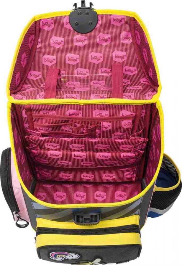 Exkluzivní školní aktovka s motivem navrženým dcerou Dary Rolins, vhodná pro žáky 1. - 2. třídy ZŠ. • Školní ergonomická aktovka s vyztuženým tělem, vnitřním organizérem a třemi oddělenými kapsami • Posuvný zádový systém BAAGL ADJUSTABLE SYSTEM umožňuje nastavení optimální polohy popruhů vzhledem k výšce dítěte • Ergonomicky tvarovaná záda, plně nastavitelné ramenní, prsní a boční kompresní popruhy pro optimální přizpůsobení postavě • Lehká konstrukce drží stabilní tvar aktovky. Velmi nízká hmotnost aktovky – 958 g • Izolovaná přední kapsa na penál, boční kapsa na láhev s nápojem a jedna uzavíratelná kapsa na drobnosti. Vnitřní organizér umožňující rovnoměrné rozložení hmotnosti • Tělo aktovky je vyrobené z pevného voděodolného materiálu • Reflexní prvky pro bezpečnost dítěte