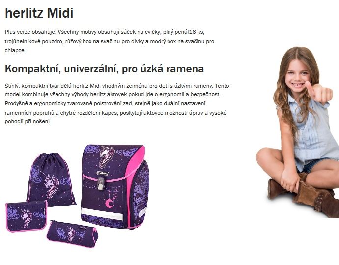 Štíhlý, kompaktní tvar činí herlitz Midi vhodným zejména pro děti s úzkými rameny.