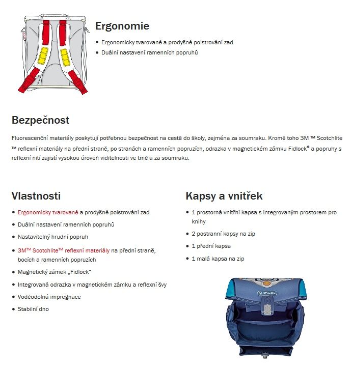 Tento model kombinuje všechny výhody herlitz aktovek pokud jde o ergonomii a bezpečnost.