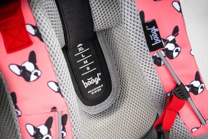Posuvný zádový systém BAAGL ADJUSTABLE SYSTEM umožňuje nastavení optimální polohy popruhů vzhledem k výšce dítěte.